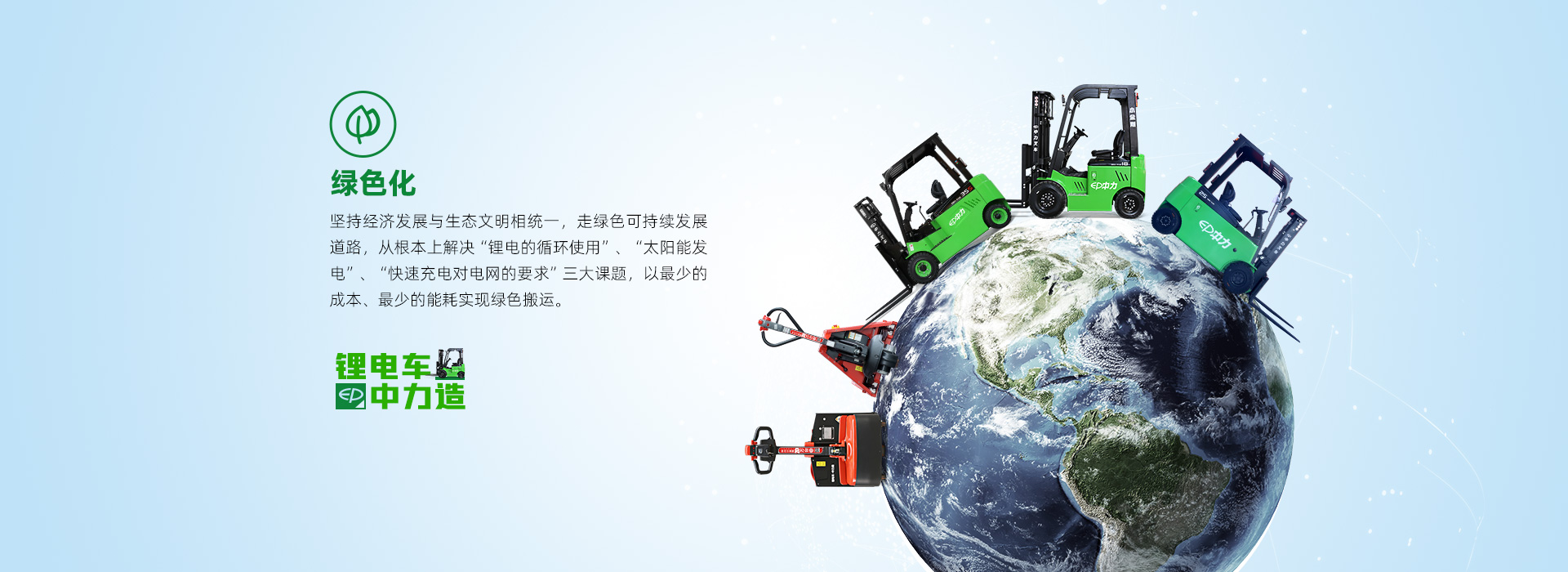 作为深耕电动叉车及仓储物流设备领域的创新者,关注社会生态发展,倡导无碳节能,不断推出能解决实际搬运难题、环保难题的电动叉车、电动仓储设备及新能源锂电系列产品等,为绿色未来尽一份责任。